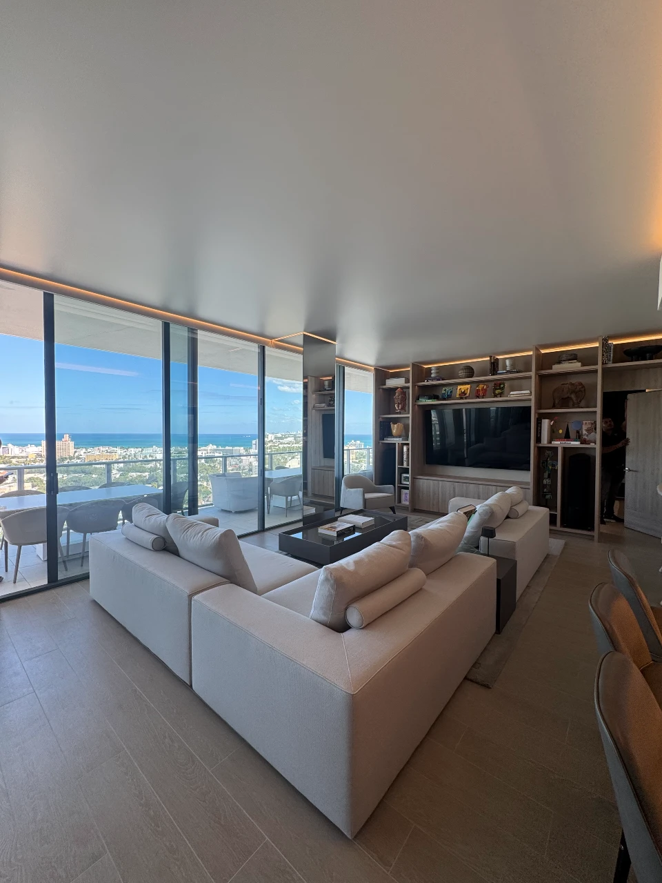 This project focused on high-end interior accents and custom integrated features. We designed and installed a new television unit featuring a seamless paneled door for a clean, cohesive look. To enhance the modern aesthetic of the space, we installed a stretch ceiling (techo tensado) complete with a specialized perimeter lighting system to create a sophisticated ambient glow.