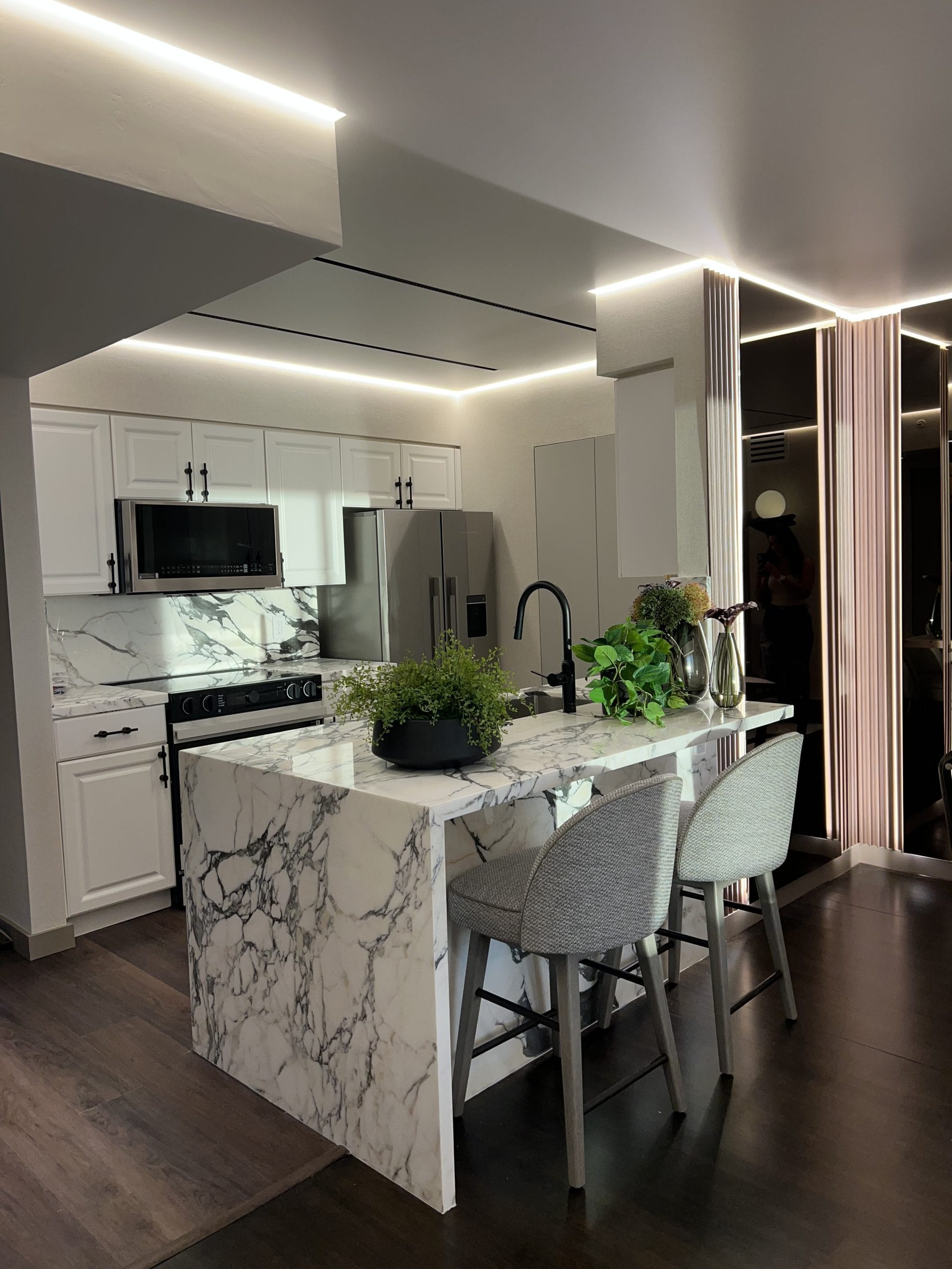 This project at Portofino involved a full interior renovation, focused on modernizing the space through updated finishes, improved functionality, and cohesive design integration.