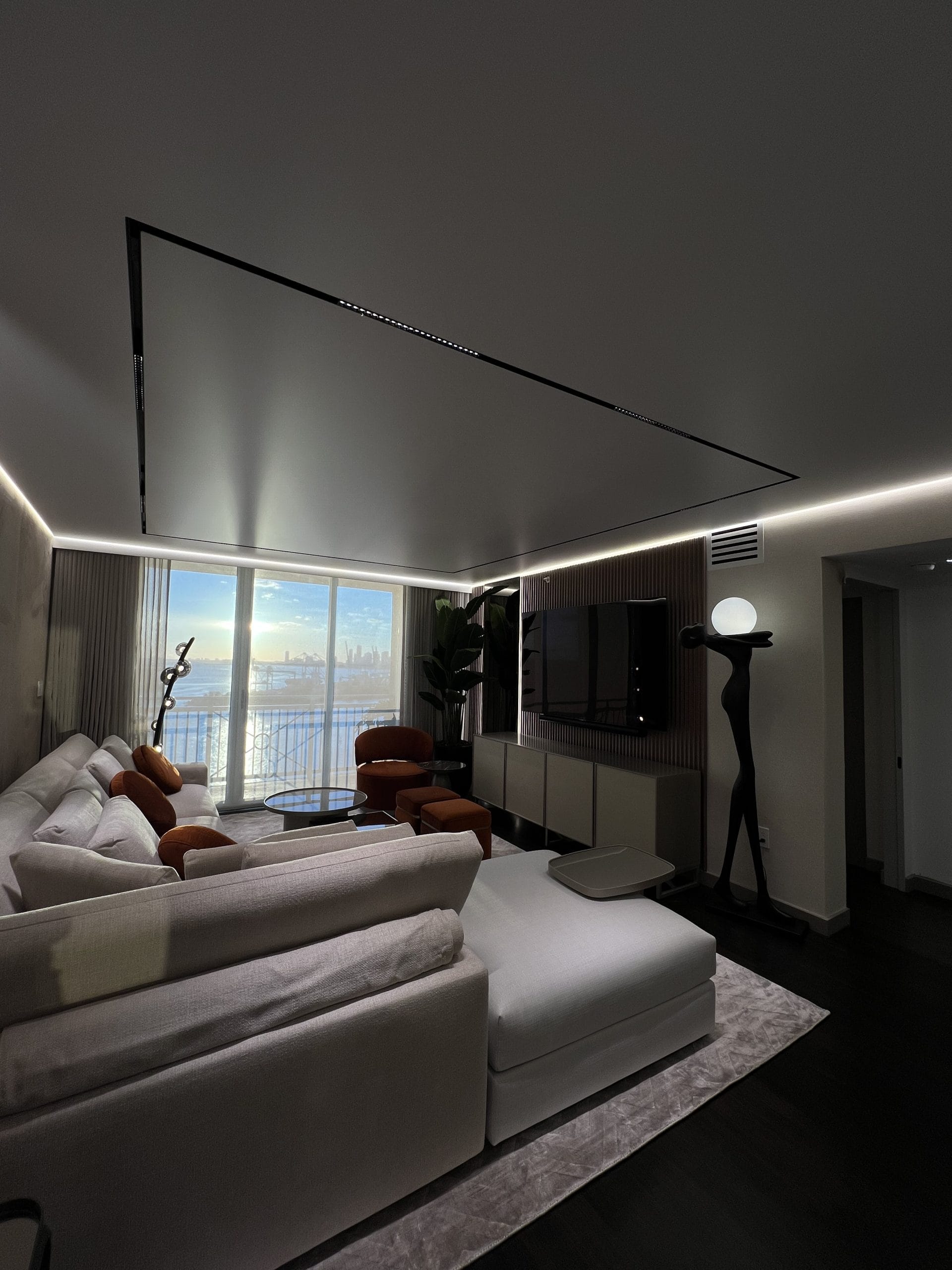 Architectural enhancements included the installation of stretch ceilings (techo tensado) in the living room and master bedroom, allowing for a refined finish and integrated lighting potential.